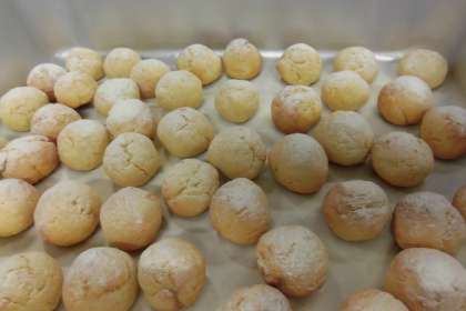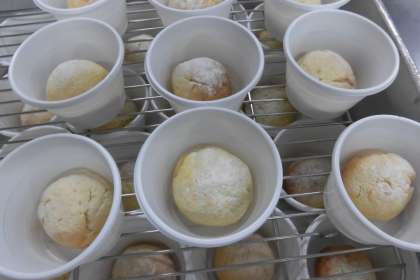 朝から雪まじりの雨がふっていた今日は、「おから」を使って『スノーボール』を作りました。パウダースノーのように見えるのはスキムミルクです。
