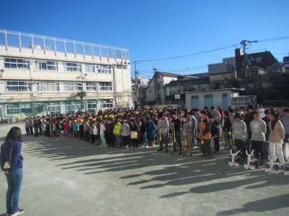 暖かい全校朝会