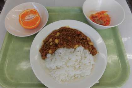 【献立】大豆入りカレー・にんじんサラダ・ぽんかん・牛乳