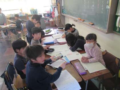 発表するときの構成を考えながら、みんなで仲良く相談していました。