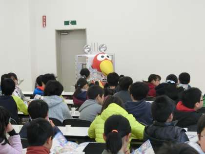 菓子工場では、有名なマスコットキャラクターが子どもたちを出迎えてくれました。
