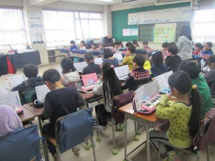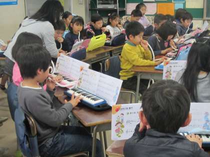 2年生は音楽の時間に、鍵盤ハーモニカの練習をしました。