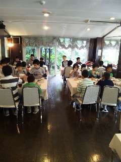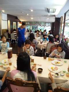 ハイキング前の大事な朝ごはんです。おかわりする子も多く、みんなおいしくいただきました。