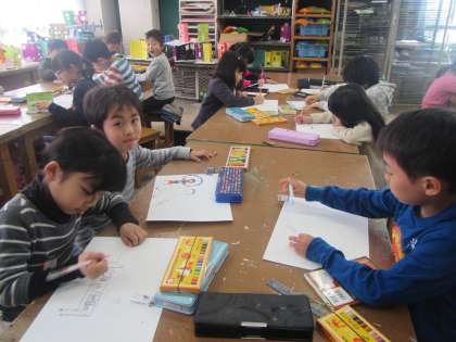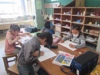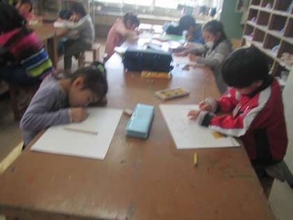 来月からやってくる新入生たちのために、学校生活を絵で紹介するのです。