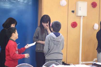 感心している保護者の皆様に、子どもたち手作りのプレゼントが手渡されました。