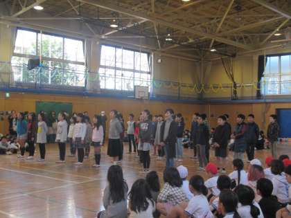 始めに6年生の鼓笛レパートリーにもなっている「キセキ」を歌い、次に恋ダンスを披露しました。