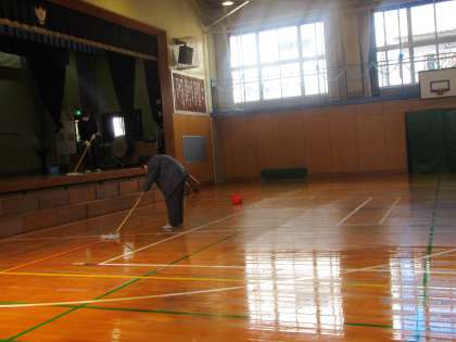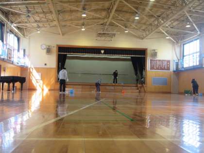主事さんたちが午前中、体育館のワックスがけをしました。