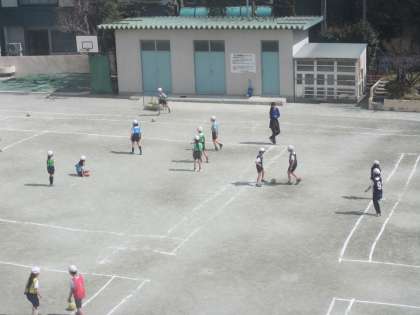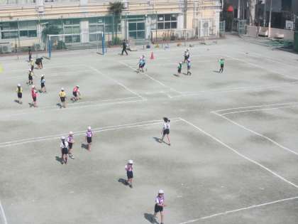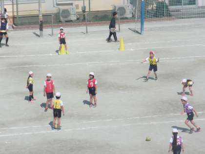 始めはおそるおそる蹴っていた女の子たちも、力強くボールを蹴ります。