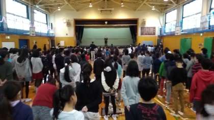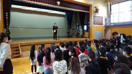 もうすぐ終わる今年度ですが、とてもしっかりとしている若小の朝会です。
