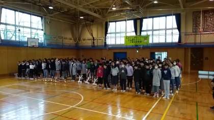 体育館に集まった全校児童。