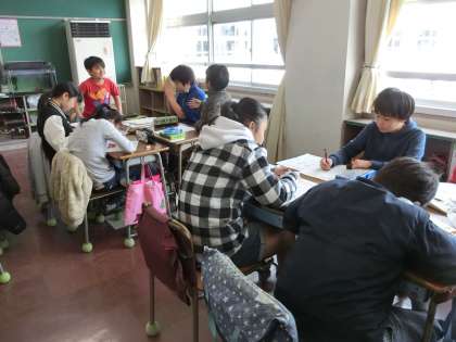 家庭科の授業で各家庭での団らんについて班で話し合いました。