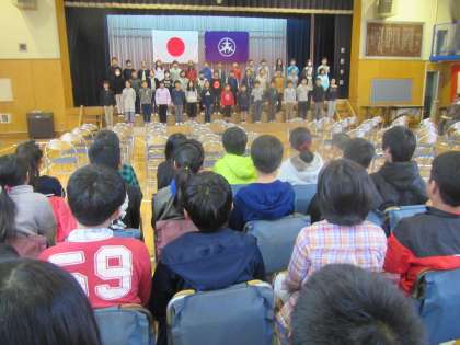 今日は3学年合同練習が初めて行われ、若小のリーダーと次期リーダーたちが体育館に集結。