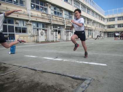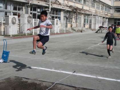 4年生は朝から元気いっぱいの走り幅跳びをしました。