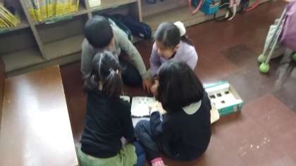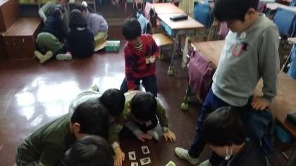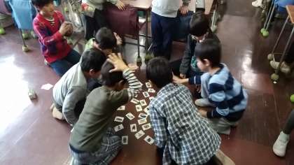 1年生は教室で一緒にかるたをしたり、本を読んだりと、思い思いの過ごし方をしています。
