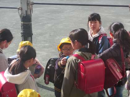 今朝も1年生と6年生が楽しそうに話していました。