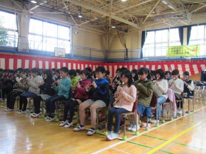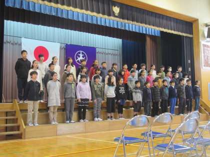 先生たちも全員体育館に集まって、粛々と式が進んでいきます。