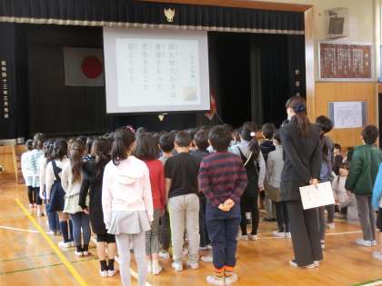 学年ごとに発表した後は、全校一斉に教育目標を読み上げました。