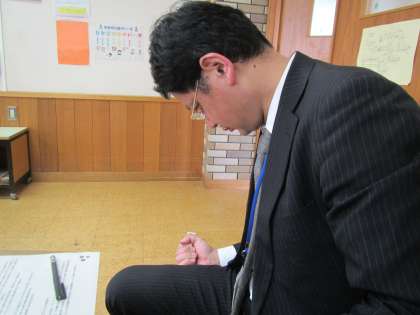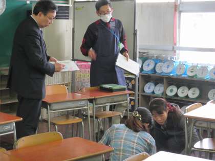 養護の先生からレクチャーを受けて、携行型注射器の使い方を練習しました