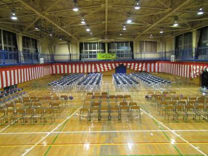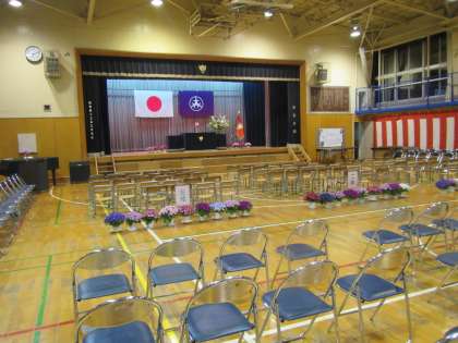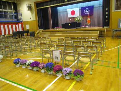 入学式に向けて会場の準備は万端整っています。