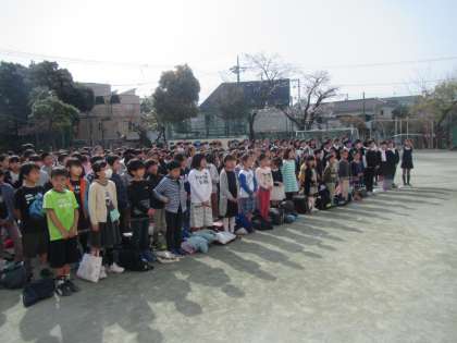 新3年生はクラス替えがありましたので、名簿をみて自分のクラスに並びました。