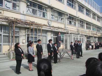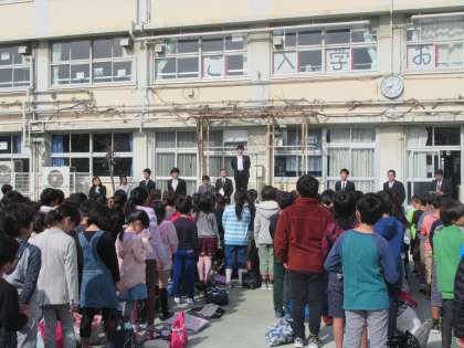 始業式の前に、新たに若小にやってきた先生と出会う着任式がありました。