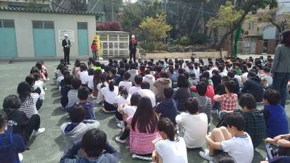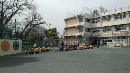若小の近隣で火災が発生したという想定で、避難訓練を行いました。