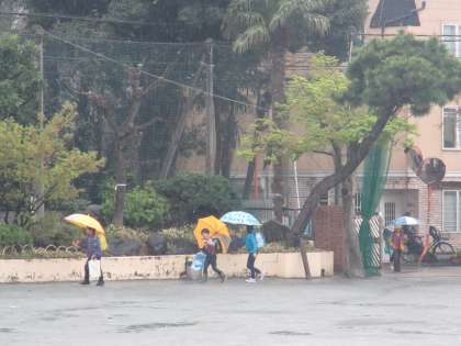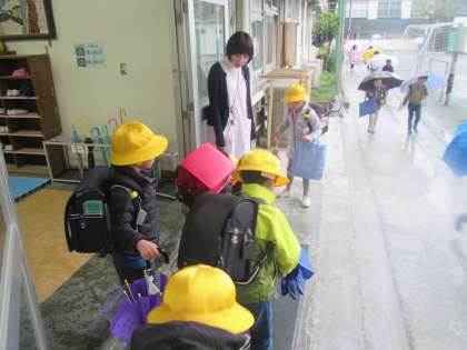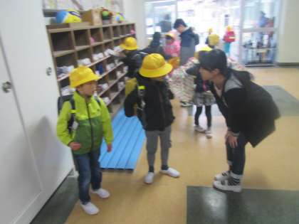 玄関に来ると6年生の子たちが1年生を迎え入れます。