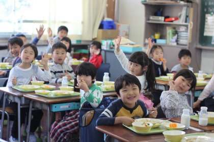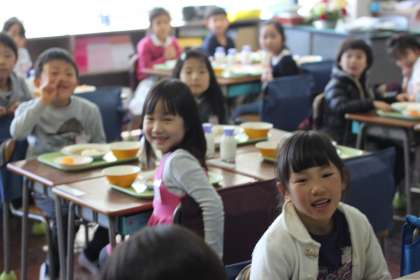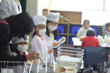 給食当番さんががんばって、せっせと配膳を進めてくれました。