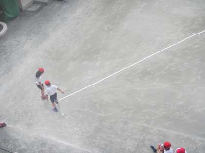 4年生が校庭で体育をしました。