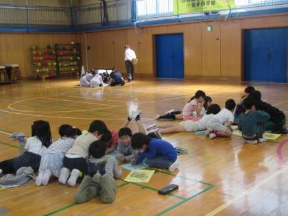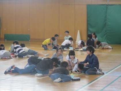3、4年生が体育館に集まって、遠足についての話し合いをしました。
