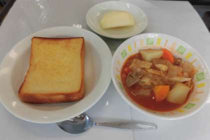 【献立】フレンチトースト・ボルシチ・りんご・牛乳
