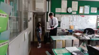 若小では、毎朝9時までに日直さんが職員室に出欠の状況を報告することになっています。