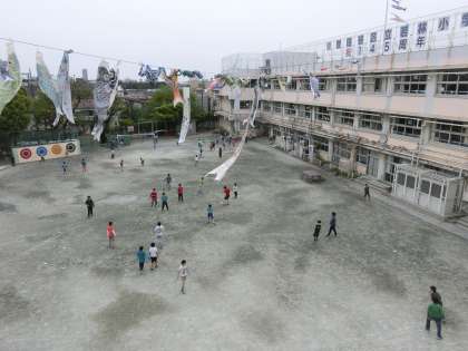 大きなこいのぼりも、子どもたちが遊ぶ様子を見守っています。