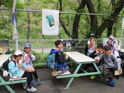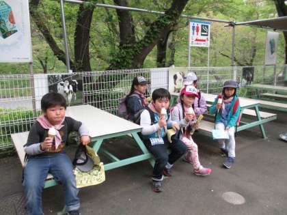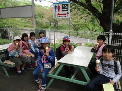 グループごとのオリエンテーリングの途中でおやつタイム!