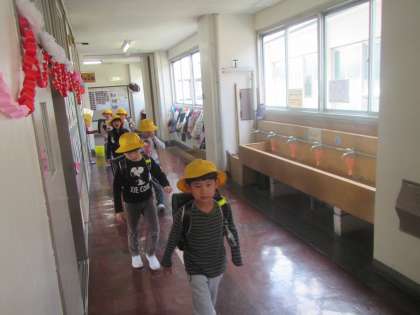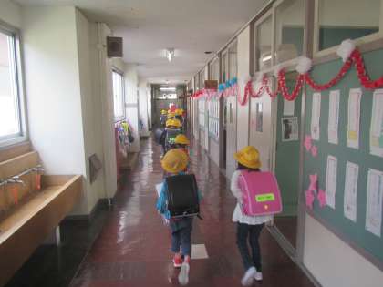 下校コースごとにきれいに整列をして玄関に向かいます。