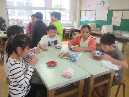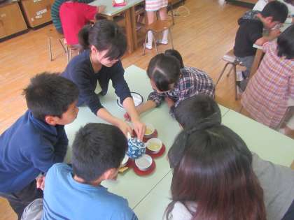 自分たちでお湯をわかして、5種類のお茶のうち好きなものを選びます。
