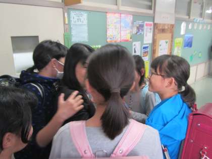 各学級で挨拶を終えた子どもたちが先生たちのところにやってきました。