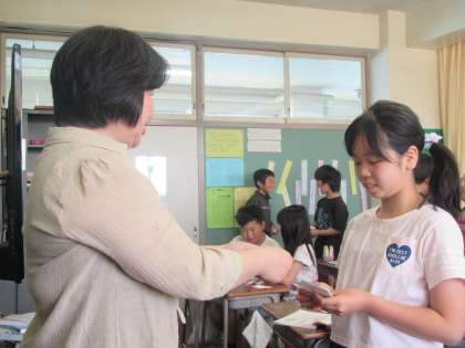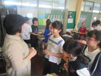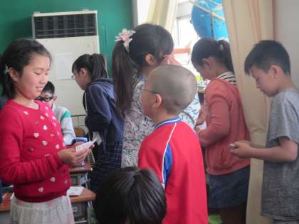 手作りのかわいい名刺を片手に、次々に自己紹介をしていく5年生。