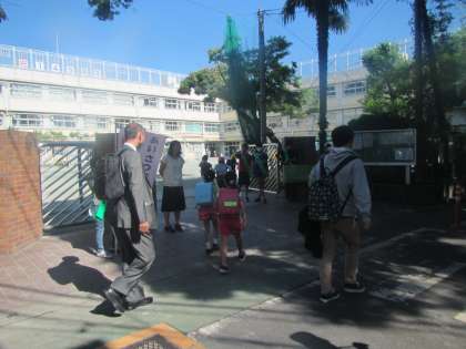 玄関前でもたくさんのあいさつが交わされていました。