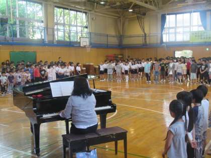 春に相応しい「みどりのラララ」で全校児童がひとつになりました。