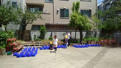 昨日、保護者の皆様のご協力をいただいて行ったアサガオの種まき。