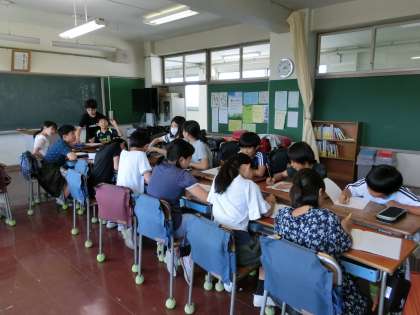 放課後に児童会役員さんと各学級の代表委員さんで話し合いを行いました。