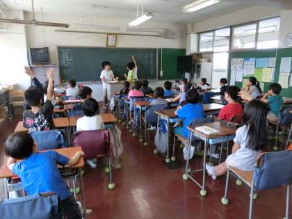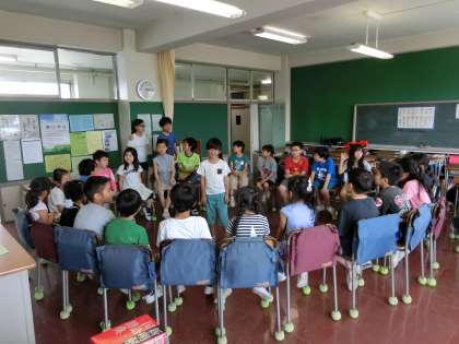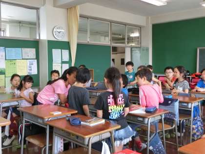 1年生から6年生までが一緒の班を作り、交流しながら活動する時間です。