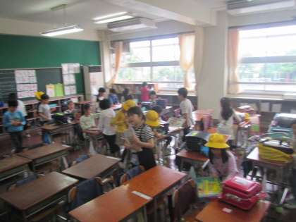 昨日から1年生の担任の先生も職員朝会のために、朝の時間、子どもだけで教室で過ごすようになりました。