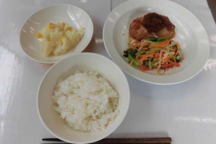 【献立】ごはん・豆腐入りハンバーグ・和風ソース・おひたし