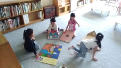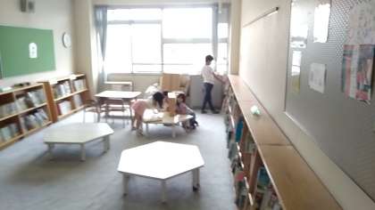 低学年は絵本室へ、大きな子は図書室へ。