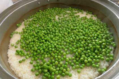 グリンピースごはんが出来上がるまでの様子 2