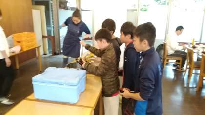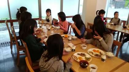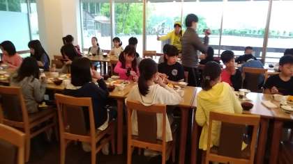 食事係さんが準備してくれた朝食をみんなでいただきます。