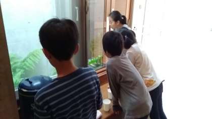 窓の外にカエルを見つけた子もいました!
