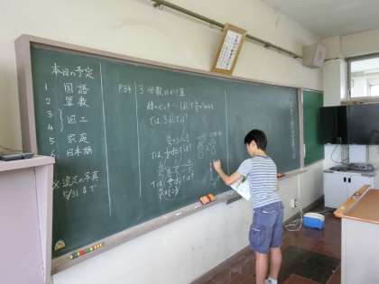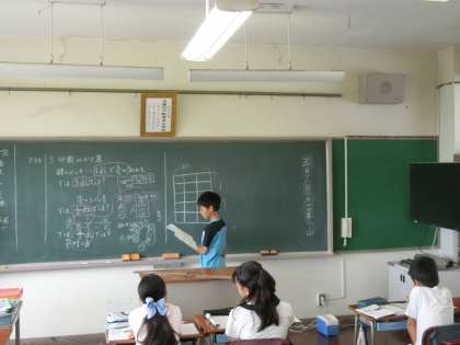 積極的に黒板前に出て、自分の意見を友達と伝え合いました。